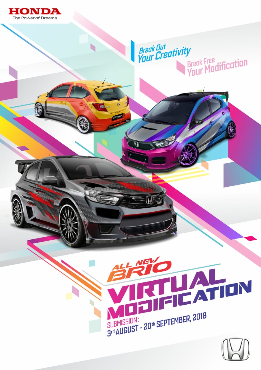Honda Gading Serpong - PT Honda Prospect Motor (HPM) menggelar kontes “Honda Brio Virtual Modification (V-Mod)” sebagai wadah untuk menampilkan kreativitas para peminat modifikasi digital di Indonesia. Kontes ini akan berlangsung selama periode 3 Agustus – 4 Oktober 2018 dan terbuka untuk masyarakat umum.